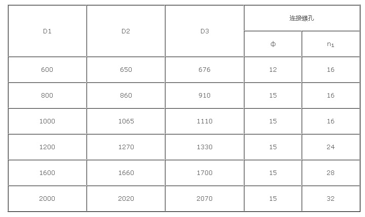 FDZ-(2)型產品連接尺寸表(部分規格)